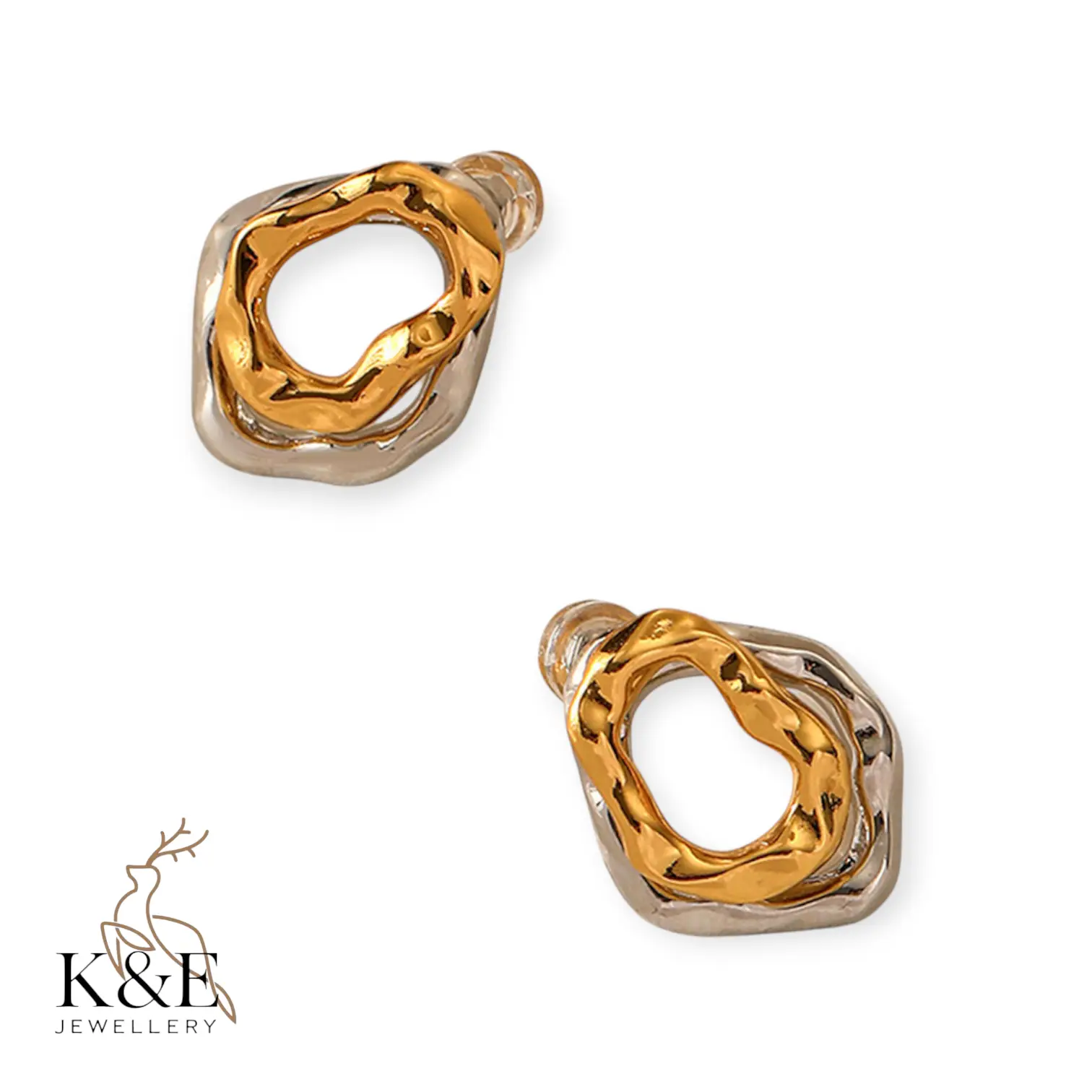 Double-hammered 20mm gold & silver earring. This jewellery piece features high-quality materials and timeless craftsmanship. Designed to add a touch of sophistication to any look.